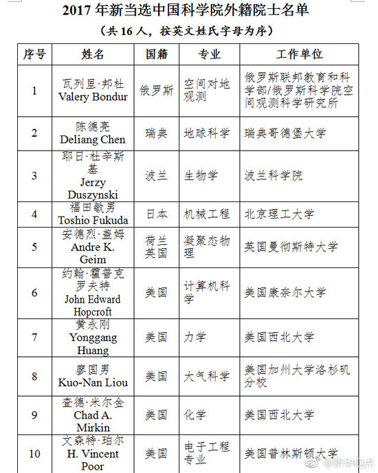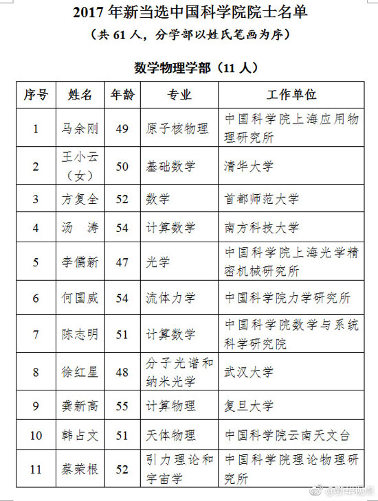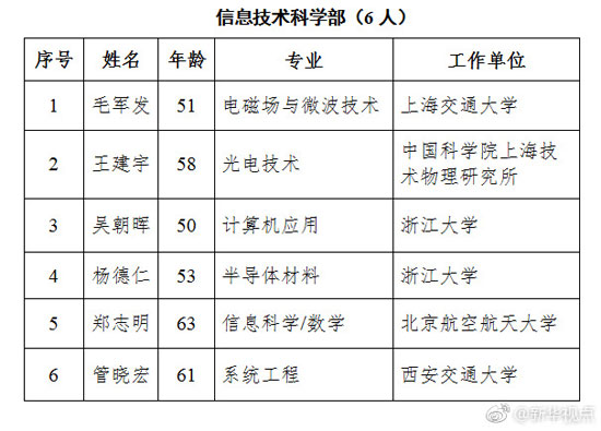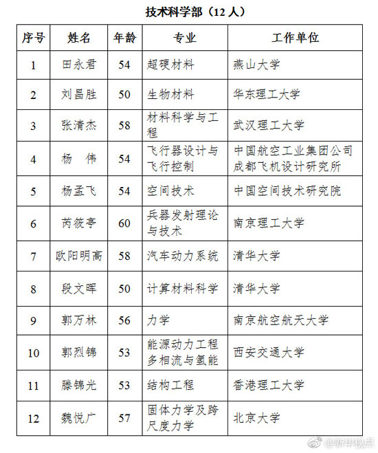 新当选的67名院士中,男性63人,占94%;女性4人,占6%。最小年龄49岁,最大年龄67岁,平均年龄56.37岁。60岁(含)以下的57人,占85%;61岁至70岁(含)的10人,占15%,更多优秀的中青年工程科技专家当选。新当选院士中,来自高等院校的有31人,占46.2%;研究院所18人,占26.9%;企业及医院18人,占26.9%。多位来自企业和基层一线的工程科技专家,以及长期工作在新疆、甘肃等西部边远地区的优秀专家当选。外籍院士增选结果同步产生,本次增选共有18位外籍专家当选为中国工程院外籍院士。