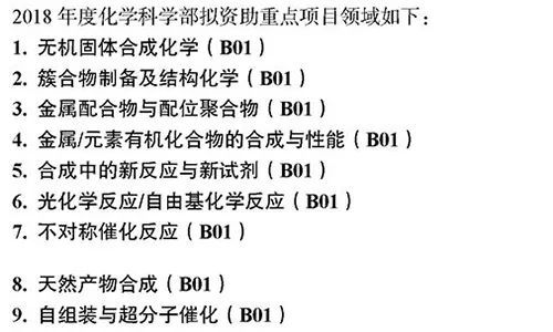 日前,2018年度国家自然科学基金项目申请指南发布,今年的国家自然科学基金项目申请发生了很多变化,化学科学部申请代码全面调整,下面一起来看今年将资助的一些重点方向。