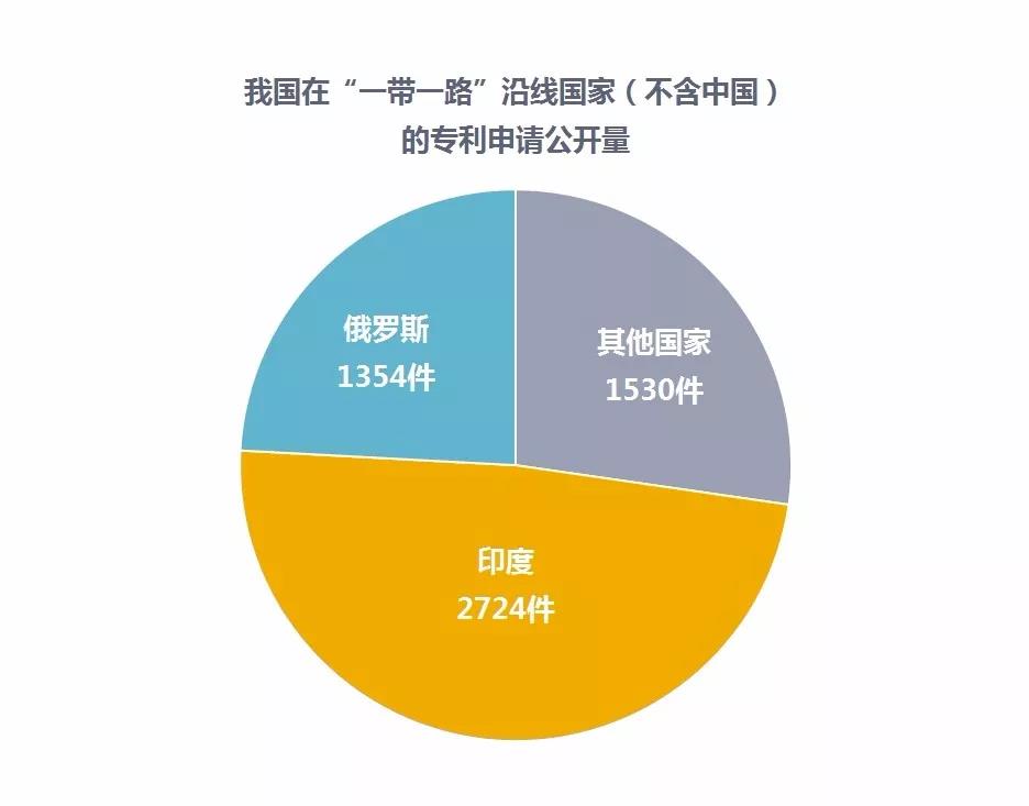 2017年,我国在“一带一路”沿线国家(不含中国)专利申请公开量为5,608件,同比增长16.0%。其中,在印度专利申请公开量为2,724件,在俄罗斯专利申请公开量为1,354件,专利申请初具规模。2017年,“一带一路”沿线国家在华申请专利4,319件,较2016年增长16.8%;在华申请专利的国家数达到41个,较2016年增加4个。