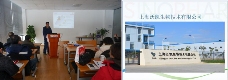 上海沃凯生物技术有限公司柯德宏总经理作平台化学试剂生产技术与条件介绍,从一、公司概况介绍、二、生产基地设施、设备情况、三、近期生产、技术研发情况的三个方面介绍,最后向来宾表示,欢迎大家合作共赢。