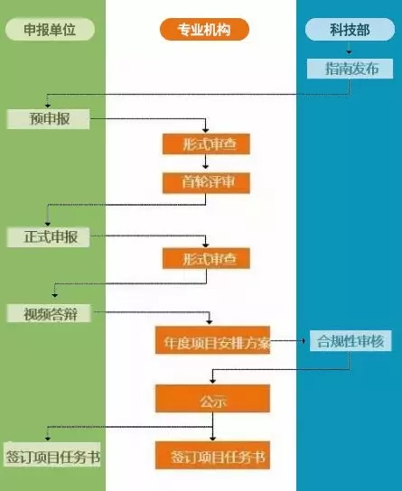 首轮评审:专业机构受理预申报书后开展首轮评审,不需要项目负责人进行答辩。首轮评审将遴选出3-4倍于拟立项数量的申报项目,进入下一轮正式申报。