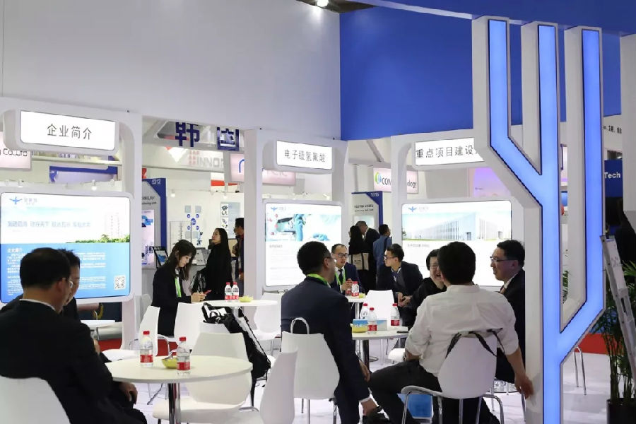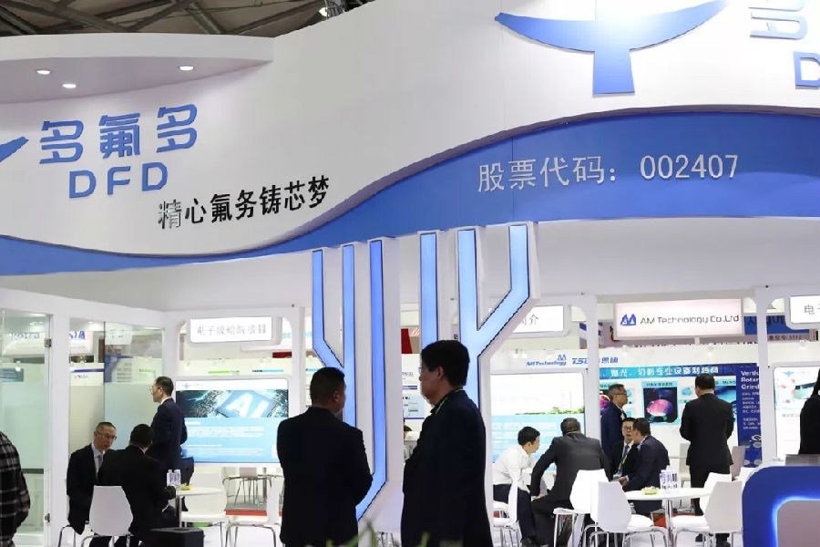此次展会为半导体行业中每年一次盛会,多氟多化工股份有限公司(以下简称:多氟多) 携电子级氢氟酸、电子级多酸等多种产品第5次参展。公司展位位于展区的中心位置,吸引了来自全国各地的客户,上下游合作伙伴及同行的目光,观展的人群络绎不绝。
