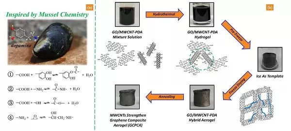 图1 石墨烯/碳纳米管复合气凝胶(GCPCA)的示意图(期刊封底)