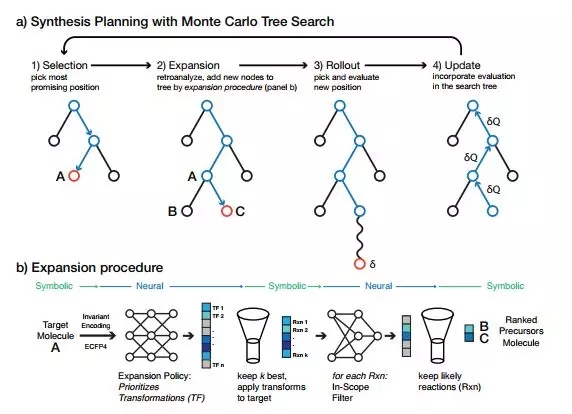 这个算法还运用了类似于AlphaGo的蒙特卡罗树搜索,可将目标分解成数千个可能的节点,在每一步化学反应后评估最有可能成功的下一步,并进一步探索这个“分支”。