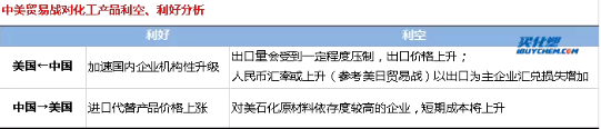 买化塑研究院认为,美国对中国加税化工产品增多,但是多数与中国对美加税化工产品重叠,而重合的部分普遍对外依存度较高或者进口量远大于出口量,故相对来说,重合产品美国加税的影响远远小于中国加税影响。 从短期来看相关标的可能受损,但是长期来看,有望加速行业改革和布局,提高相关标的抗风险能力。