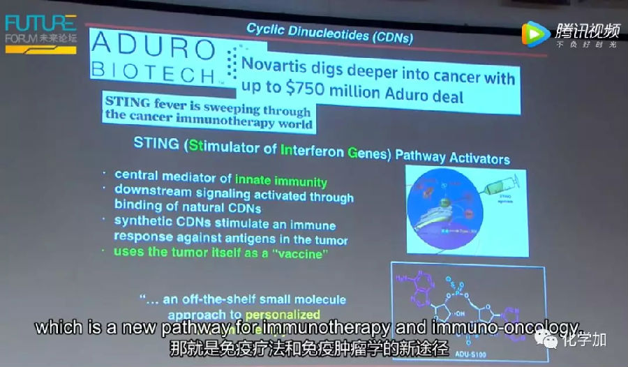 所有类型的亲核试剂中不仅可以使用醇,而且还可以使用胺和酰胺。你可以抨击另一个问题,一个在现代医学中非常重要的问题,那就是现代医学是免疫疗法和免疫肿瘤学的新途径,它被称为STING途径,它基本上可以武装你的免疫系统去攻击肿瘤。问题在于这些分子需要实际产生这些影响,并且STING是多步合成,其完全不可靠并且不能大规模生产,因为它们都使用三价磷。结果就是理想性低,并且混合了许多不同的产物。形成鲜明对比的是,五价磷可以让你完全改变局面,制造出具有高理想性和完全可控的立体化学的相同的化合物。