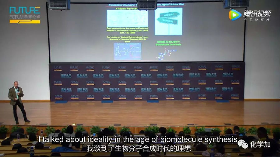 今天我简单讲了一些我们实验室中体现了医学和合成关系的一些项目的例子。我们称之为转化化学。我谈到了自由基,以及它们带来的关于有机分子组合方式的新思考。最后,我谈到了生物分子合成时代的理想。不管你在研究生物碱、一种肽、寡核苷酸、生物制剂、小有机或是香水,都无所谓。有机化学、合成有机化学会影响所有这些领域甚至更多领域。