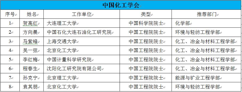 两年一次的两院院士增选工作于2019年1月1日正式启动。日前,具有推荐资格的各学会和科协已相继拟出院士候选人名单。其中,化学会推荐8名候选人,化工学会推荐13名候选人。