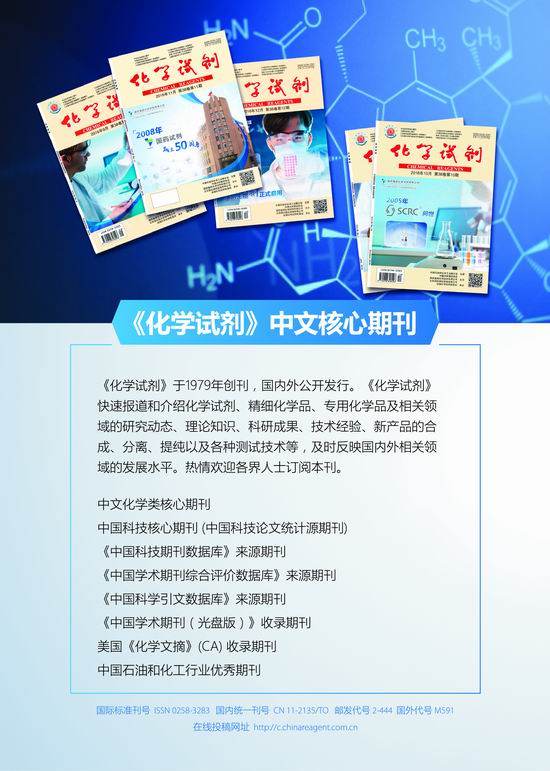 2019年3月底在中国石化联合会主管期刊第三届(2018)质量评测活动中,《化学试剂》再次获评为优秀期刊,本次中国石化联合会组织的期刊评测活动共有34家期刊参评,经过十余位专家的打分评测,《化学试剂》在文章选题的前沿性、创新性以及实用性等方面做得比较好,期刊文章基金比例较高,并积极参加试剂行业展览会,宣传期刊,扩大影响力。