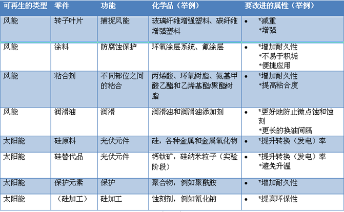 太阳能和风能技术尚不成熟,技术类型、效率及成本的快速改进和突破仍存在较大可能。这些改进建立在新材料基础之上,从而为化学公司开发现有解决方案的卓越替代品提供了大量机会。