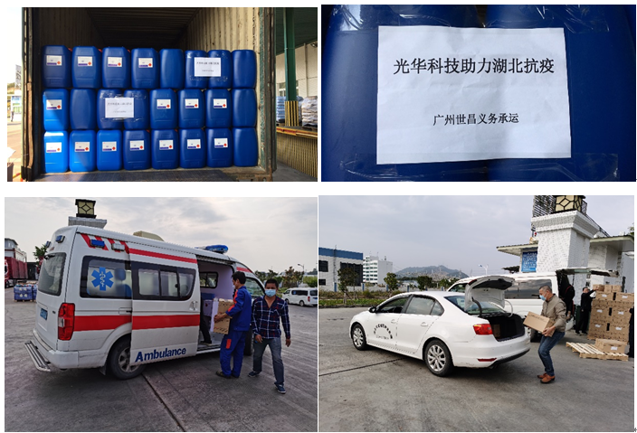 光华科技持续向湖北省疫区医院以及汕头市:市疫情防控指挥部,各区卫健局/医院/行政单位…等,捐赠防疫化学品!