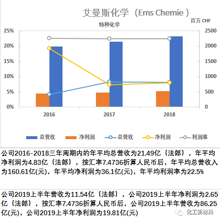 艾曼斯化学2016-2018年营利一直保持增长,受到全球经济的影响,公司2017-2018年净利润在出现一定下滑,利润同比增幅维持在7%左右,公司一直保持较高的行业利润率,平均达到22.5%。
