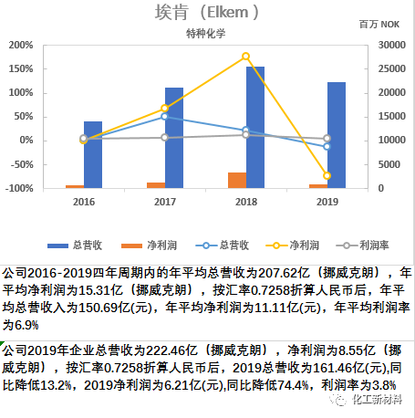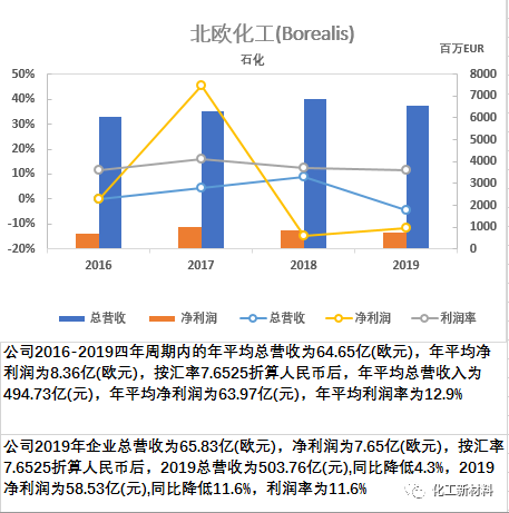 受到全球石化行业下行的影响,2019年北欧化工集团营收首次出现4.3%的下滑,利润在2018年出现14.8%的下滑上,下滑有所收缓慢,2019年净利润同比下降11.6%。公司目前主营业务还是聚焦在石化聚合物新材料产业上。