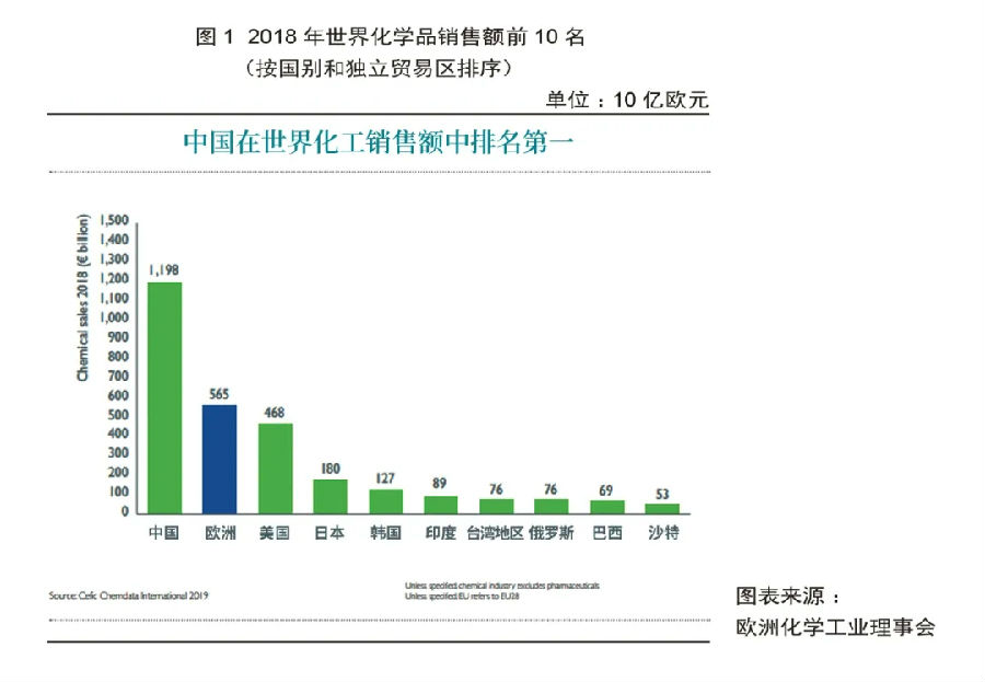 随后,在美国还诞生了基因技术、生物工程技术、新材料技术、新能源技术和航天技术,对世界高新技术的发展做出了全新的引领性贡献。特别是2000年前后的页岩气革命,又将世界新能源和化学工业技术引领到一个全新的境界。令美国人没有想到的是,正当他们全力开发21世纪的时候,亚洲和太平洋发展的脚步也从未停止。世界正在出现一种不可阻挡的蓬勃力量,令世界经济发展的格局发生了颠覆性的变化。2003年世界著名咨询机构高盛公司发表了关于中国、俄罗斯、印度、巴西(合称BRICS)的系列研究报告(《与BRICS一起梦想:通向2050之路》)。报告认为,如果保持当前的发展态势,未来几十年内,世界经济版图将发生惊人的变化。其中,中国的经济规模将急剧扩张,先后在2005年超过英国,2007年超过德国,2016年超过日本,最终,也是最激动人心的时刻就出现了,在2041年超过美国。换句话说,一个全新的世界将展现在人们面前。近年来,又有不少机构预测中国超越美国的时间表。不论计算的时间差别有多大,结论都是一致的,中国超越美国只是个时间问题。中国同美国的竞争不仅只是经济、技术方面的竞争,而且还包括军事、政治、文化等全方位的竞争。这种激烈的、全方位的竞争将会持续相当长的一个时期。有人预言:当今世界正呈现经济大战态势,在从前各国为争夺领土和殖民地而战的地方,如今正在为争夺市场或技术而战。面对世界巨变的现实,无论美国人有多少不甘,但“无可奈何花落去”的大势终将无法改变。在全球经济一体化趋势不可逆转的今天,世界化学工业同样迎来了不可避免的实力变化和地位调整的大变局。中国化学工业的崛起,是百年大变局中一件引人注目的大事件。1949年,新中国刚刚成立时,整个中国化学工业的产值只有1.7亿元。有人说这是一个让人害羞的数字。但到2010年,新中国化学工业的销售收入就达5.1万亿元(人民币)。经过整整60年的奋斗,中国化学工业的销售收入超过了美国,跃居世界第一位。到2019年时,中国化学工业的销售收入就达6.9万亿元(人民币),销售收入超过美国化学工业近3倍。中国化学工业强劲增长的势头和巨大的发展潜力,使中国化学工业散发出令世界瞩目的青春气息。