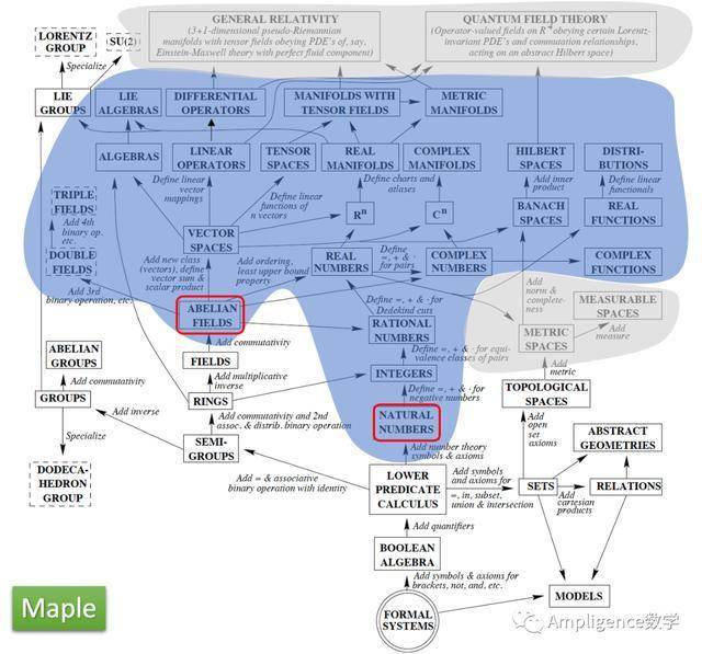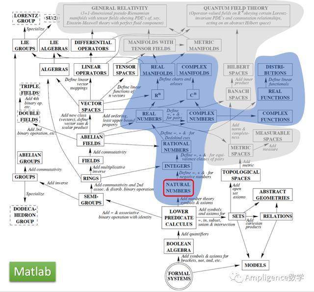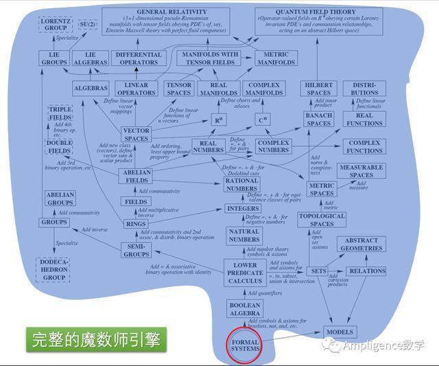 文章最后插入我们魔数师ZFC-ATP数学引擎的软广,其中ZFC代表公理化集合论,ATP代表automated theorem proving,在理论基础上远优于Matlab引擎。虽然魔数师是一个教小、初、高、大学生学数学的APP,但恰恰因为如此,魔数师对数学引擎的完备性、鲁棒性、易用性要求更高于科研数学引擎。因为科研人员受过专业训练知道什么该做什么不该做,但学生不知道,学生可以搞出任何bug来。所以,与科研数学引擎“ 在专业人员手上不出错 ”的最低要求不同,魔数师引擎以ZFC为根基做到了从根本理论上不可能出错。 当今世界的数学分支格局如下图所示。