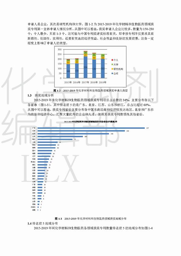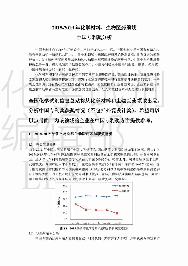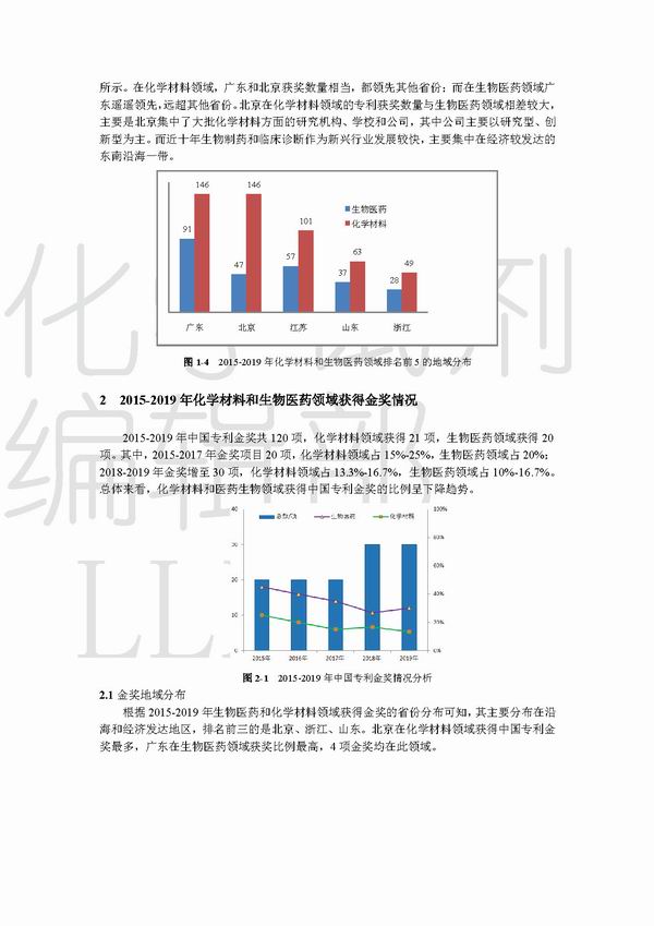2015-2019年化学材料、生物医药领域 中国专利奖分析