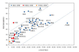 报告显示:中国国家创新指数综合排名世界第14位,比上年提升1位,是唯一进入前15位的发展中国家。从具体得分来看,中国国家创新指数得分为72.5分,比上年提高2.6分,与英国、芬兰、法国、爱尔兰等排名10~13位国家间的差距为0.2~1.8分,差距进一步缩小。