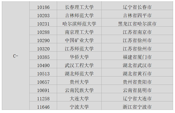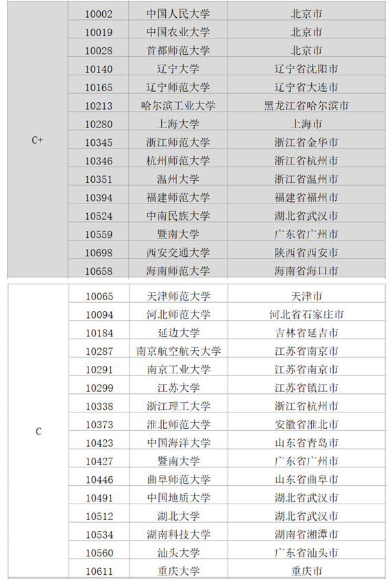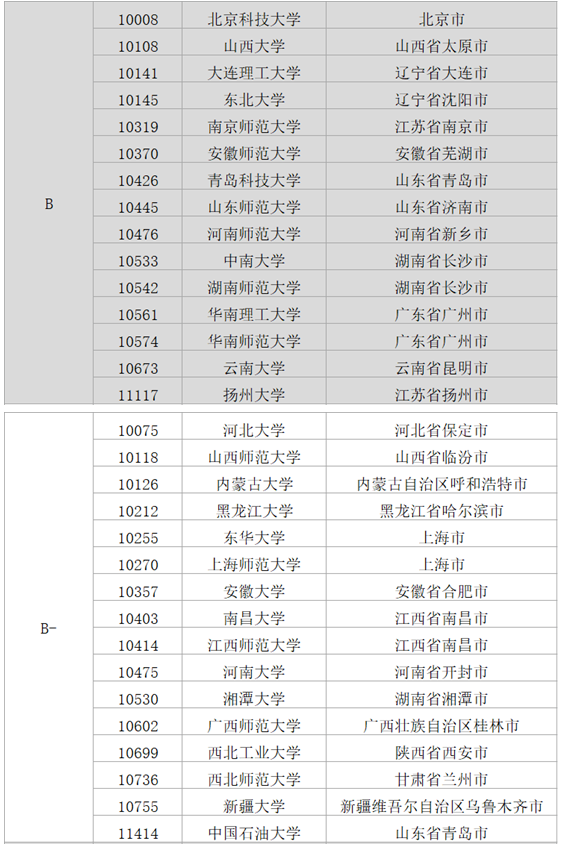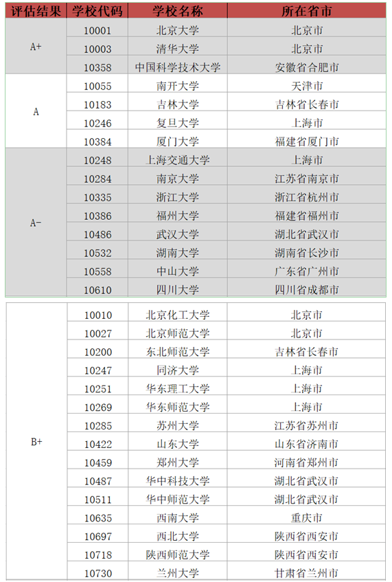 (注:评估结果相同的高校排序不分先后,按学校代码排列)。