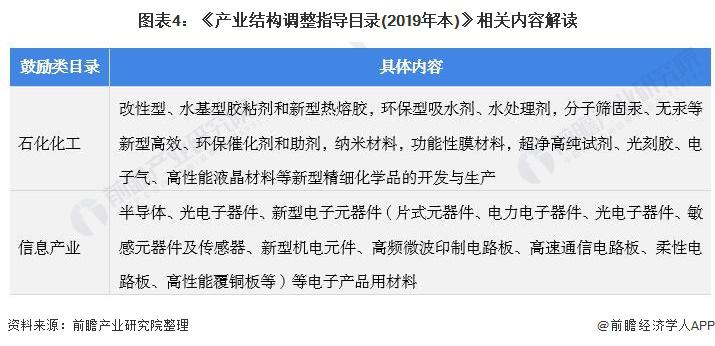 2019 年,发改委发布了《产业结构调整指导目录 ( 2019 年本 ) 》,《指导目录》中鼓励发展的与电子化学品相关的内容有: