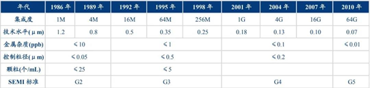 ①IC 制作技术的不断发展对超净高纯试剂中的颗粒要求越来越严,所需控制的粒径也从 5μm 到 1、0.5、0.2、0.1μm,颗粒的测试技术从早期的显微镜法、库尔特法、光阻挡法发展到激光光散射法。