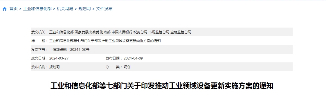推动工业领域大规模设备更新,有利于扩大有效投资,有利于推动先进产能比重持续提升,对加快建设现代化产业体系具有重要意义。为贯彻落实党中央、国务院决策部署,推动工业领域设备更新和技术改造,制定如下实施方案。