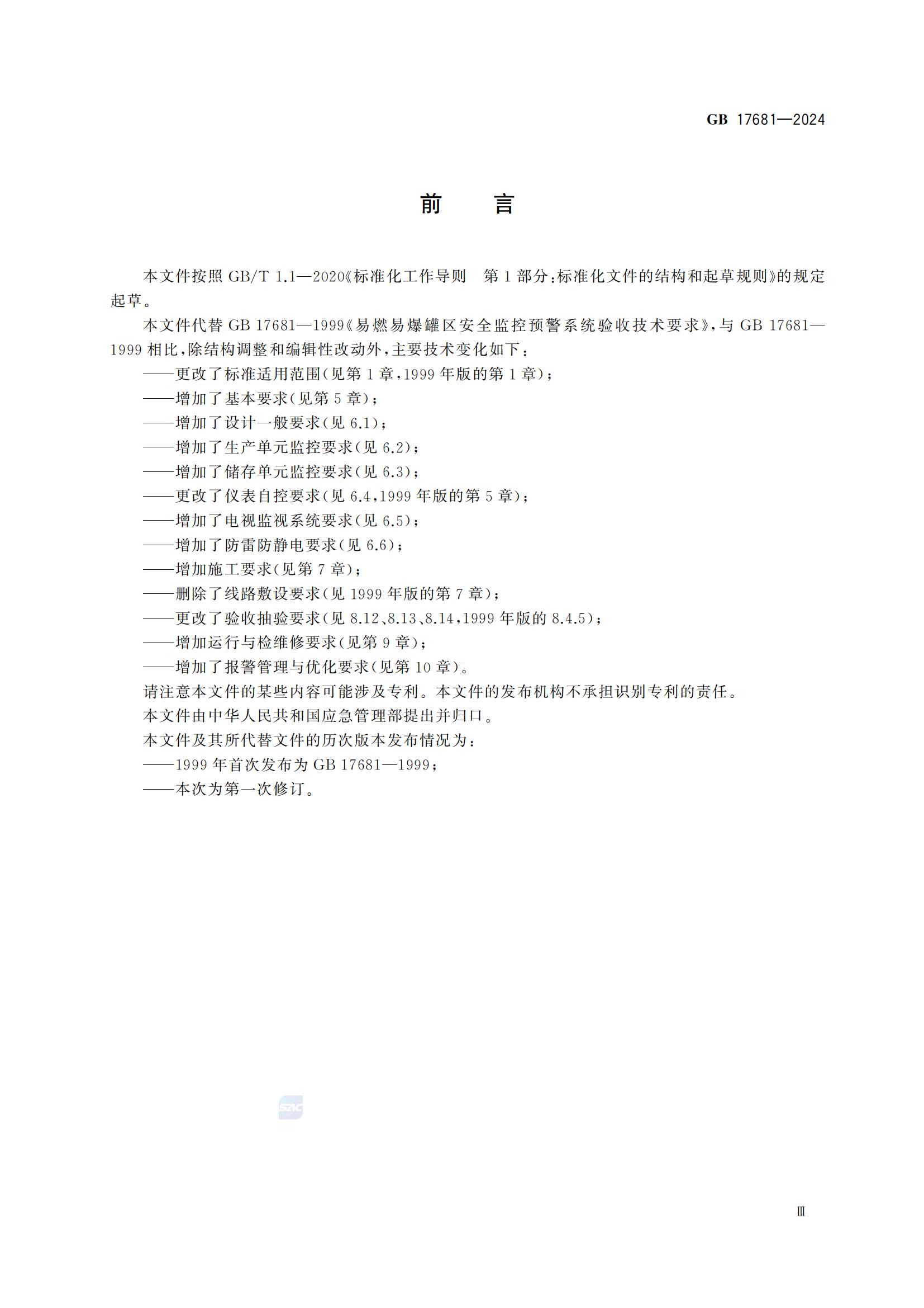 与1999年版相比,新标准在结构调整和编辑性改动的基础上,增加了基本要求、设计一般要求、生产单元监控要求、储存单元监控要求等多项内容,并对仪表自控要求、验收抽验要求等进行了更改,以适应当前技术发展和安全管理的新需求。