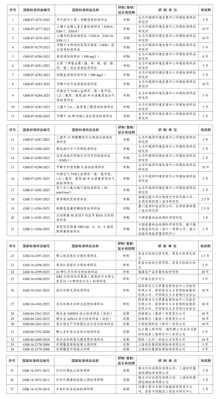 3月4日,国家市场监督管理总局(国家标准化管理委员会)发布关于批准《异辛烷中十溴二苯醚溶液标准样品》《土壤中金属元素总量标准样品(ESS-6、ESS-7、ESS-8)》等27项国家标准样品及10项国家标准样品延长有效期的公告,《公告》明确了相关标准样品的延长有效期以及延长时间。