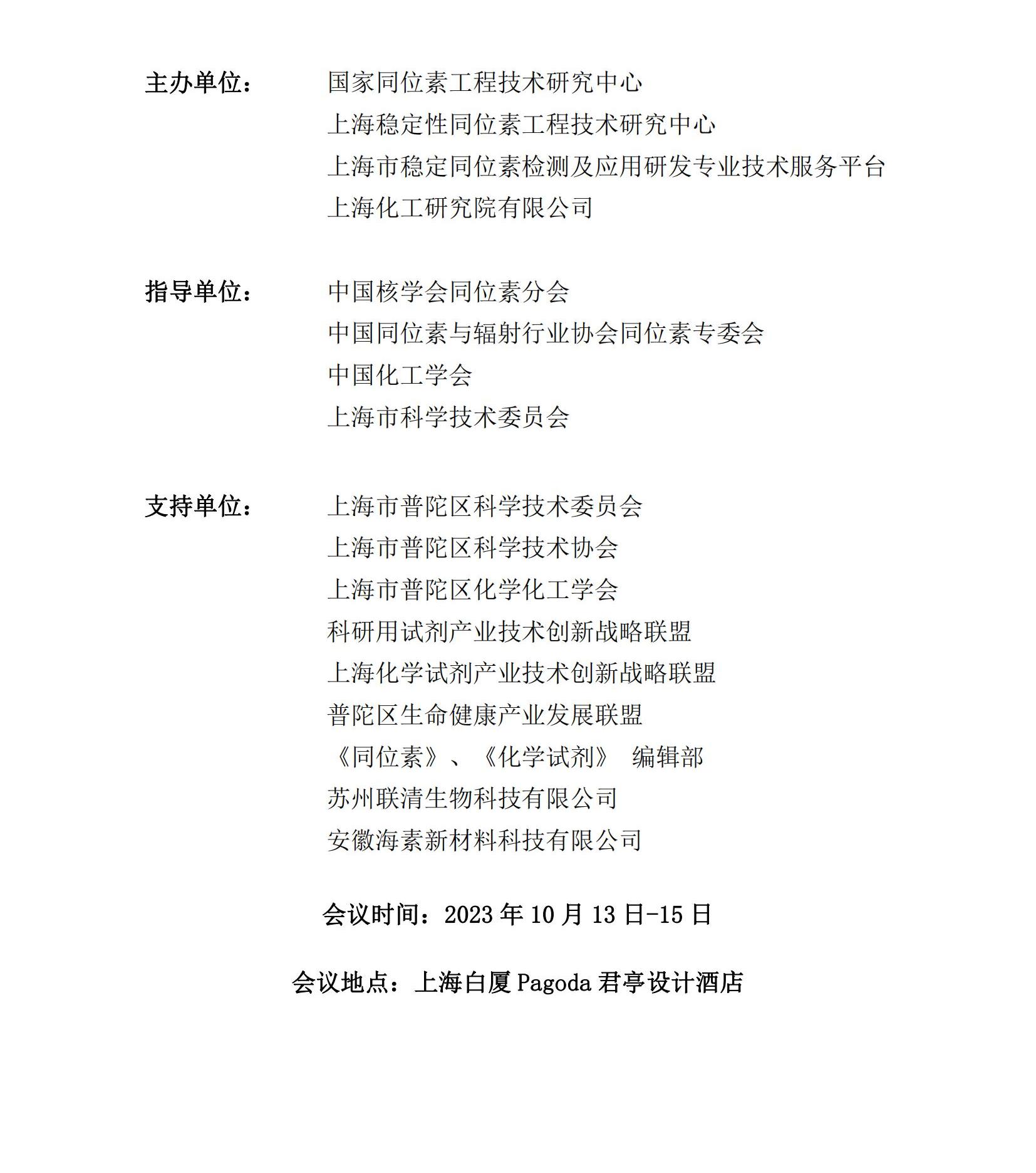 2023(第九届)全国稳定同位素制备与应用技术交流会暨第二届同位素技术与生物医药应用研讨会