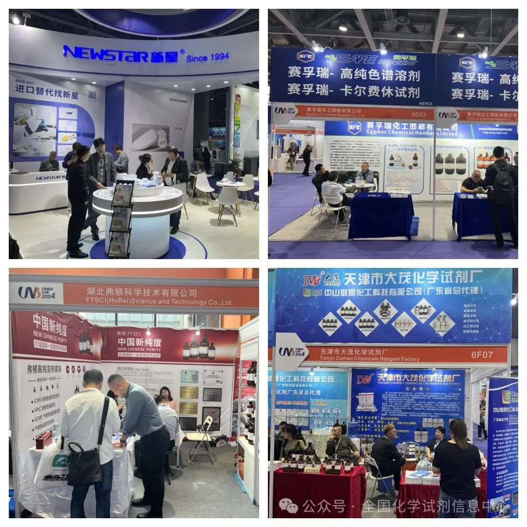 本次CHINA LAB 2024盛况依旧,吸引了大批试剂及相关企业参展,参展的试剂企业/单位有:国药集团化学试剂有限公司、西陇科学股份有限公司、天津市康科德科技有限公司、上海馨晟试化工科技有限公司、天津市永大化学试剂有限公司、上海麦克林生化科技股份有限公司、中国计量科学研究院、永华化学股份有限公司、坛墨质检科技股份有限公司、郑州派尼化学试剂厂、湖北弗顿科学技术有限公司、湖南汇虹试剂有限公司、天津赛孚瑞科技有限公司、杭州特种纸业有限公司、天津市大茂化学试剂厂、天津市化学试剂研究所有限公司等。