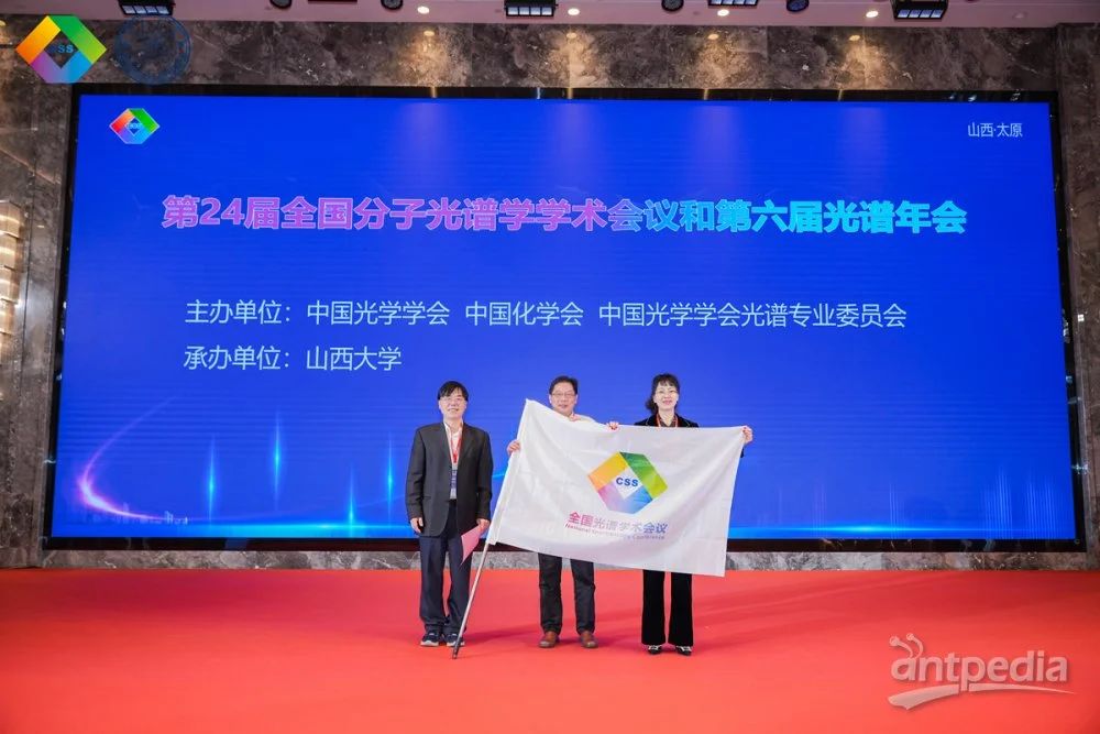 中国光学学会光谱专业委员会主任谢孟峡教授宣布,第 24 届全国分子光谱学学术会议和第六届光谱年会将于2026年8月在山西大学举办。随后,厦门大学化学化工学院杭纬教授将全国光谱学会会议的会旗转交于山西大学阴彩霞教授。