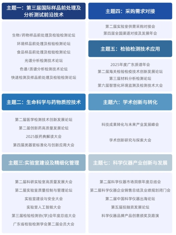 同期展会:第三届样品前处理与检验检测国际前沿论坛、OSC 2025 第四届类器官标准化大会、第二届创新药高质量发展论坛、2025年度广东质谱年会、第二届实验室设备更新及供应链采购对接暨仪器学习网年会等。