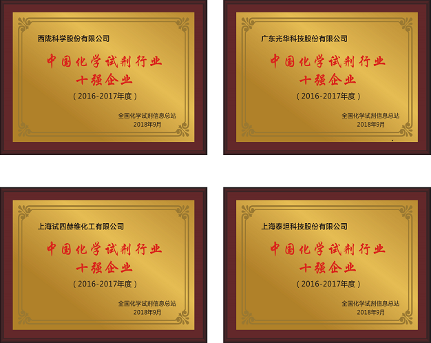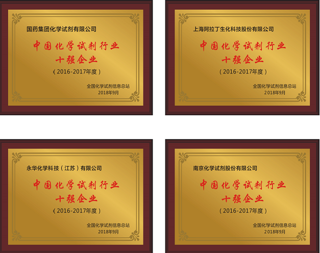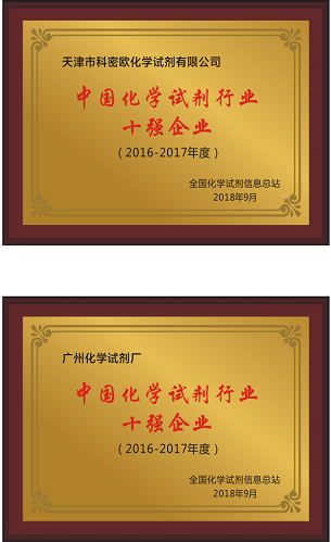 十强企业颁奖理由:获得2016-2017年度提名的中国试剂行业十强企业,在以下几方面具有综合实力:产品的销售额、品种数量、品牌影响力、市场占有率和包括物流、电子商务、仓储等服务能力排名行业前列;企业创新能力和可持续发展的能力:包括科技投入、新建项目、技术标准、企业专利数量等排名居行业前列;企业年度销售额和近两年效益增长率数据排名居行业前列。