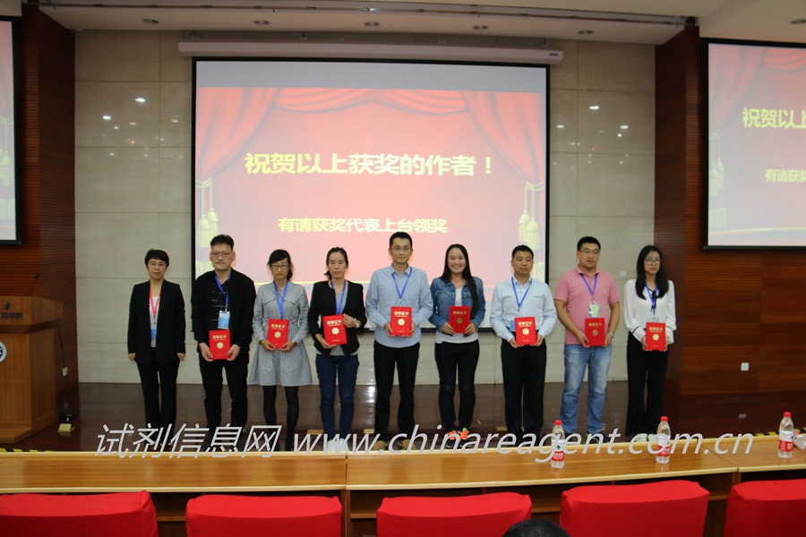 大会对获奖作者颁发奖状和奖金,予以奖励。国药集团化学试剂有限公司副总经理、上海化学试剂产业技术创新战略联盟理事长顾小焱先生为一等奖获奖代表颁奖;中国化学试剂工业协会秘书长刘长青先生、天津康科德科技有限公司总经理宋金链先生为二等奖获奖代表颁奖;全国化学试剂信息总站站长刘昉女士、《化学试剂》主编何晖女士为三等奖获奖代表颁奖。