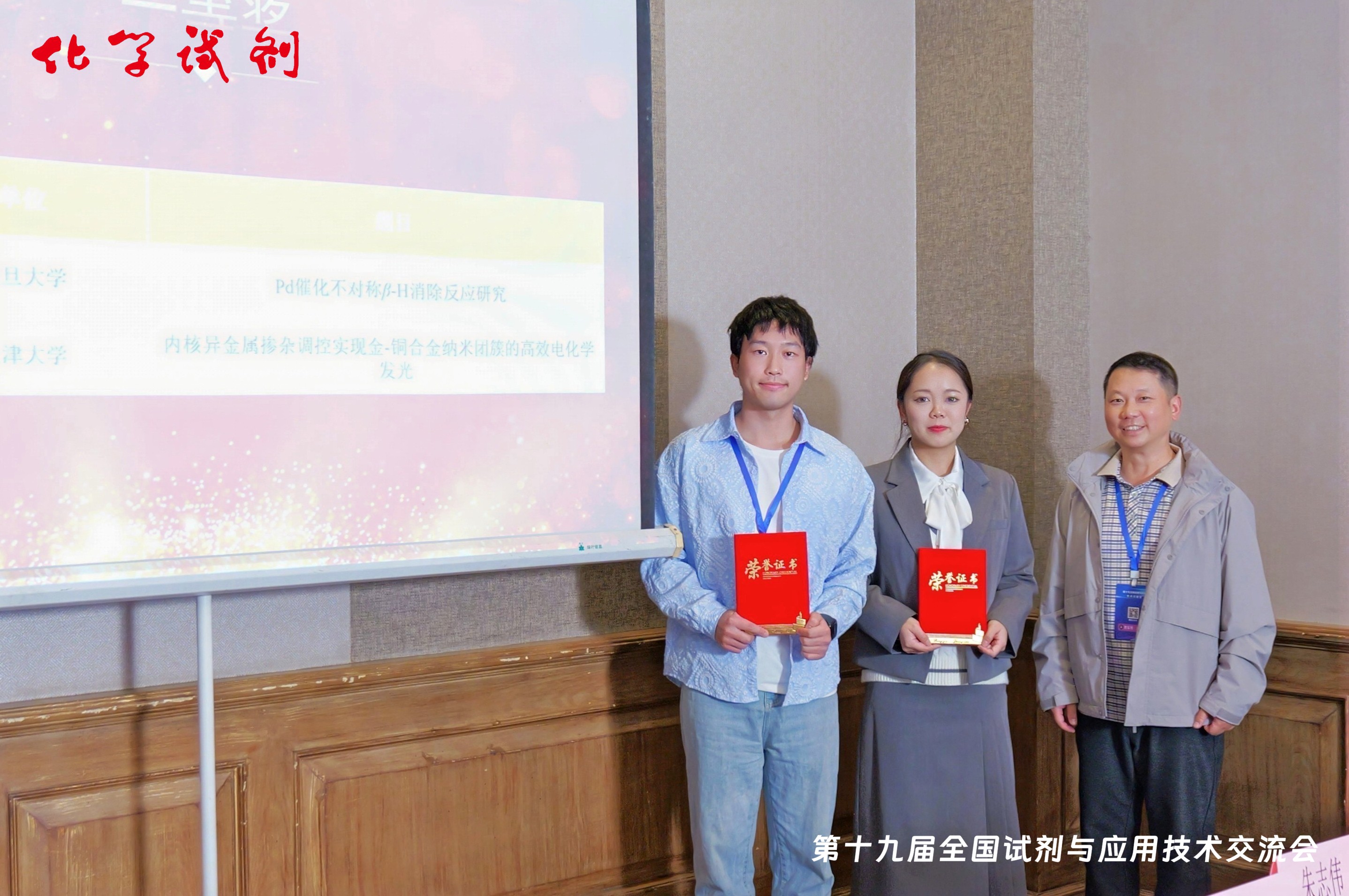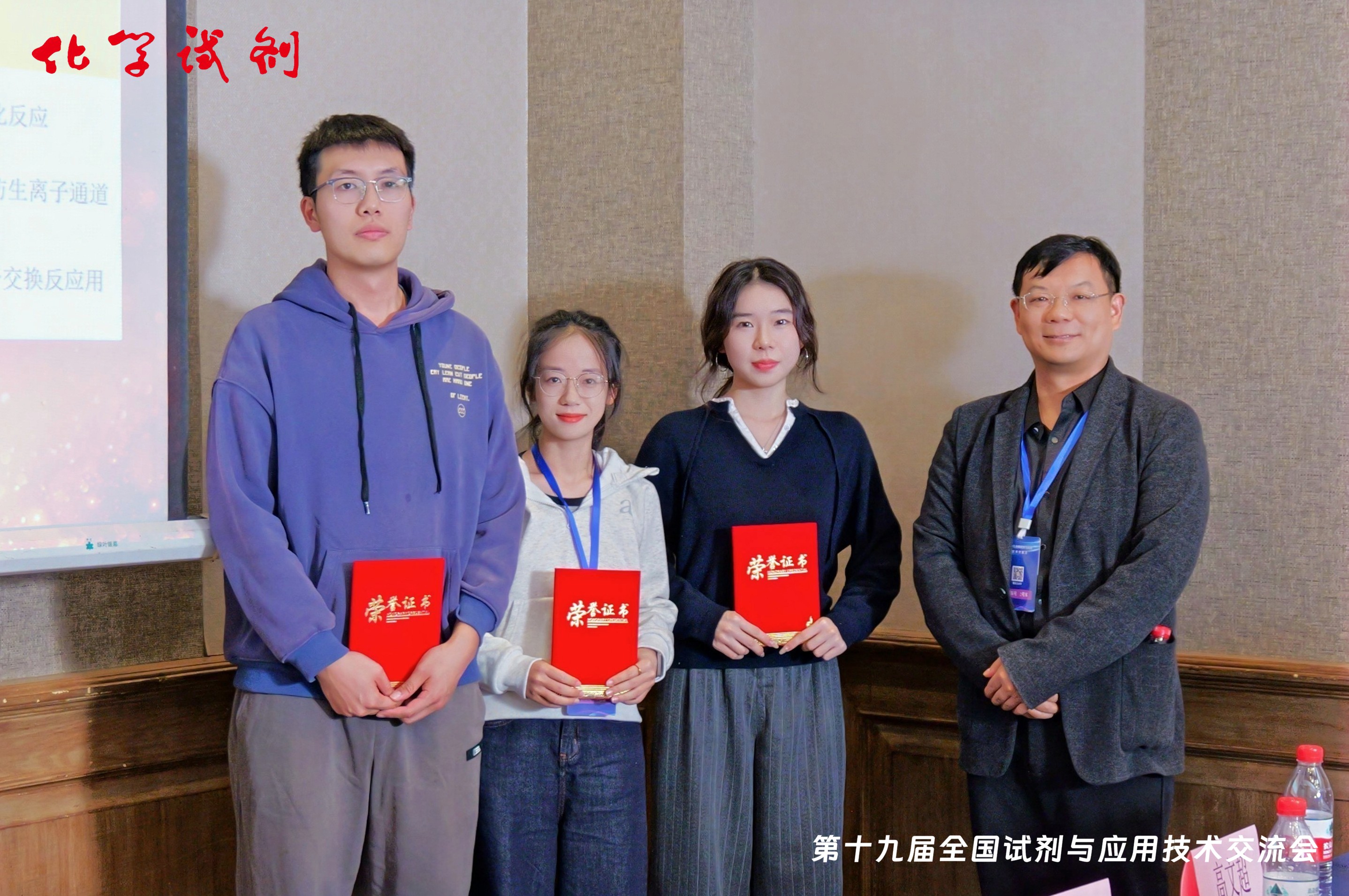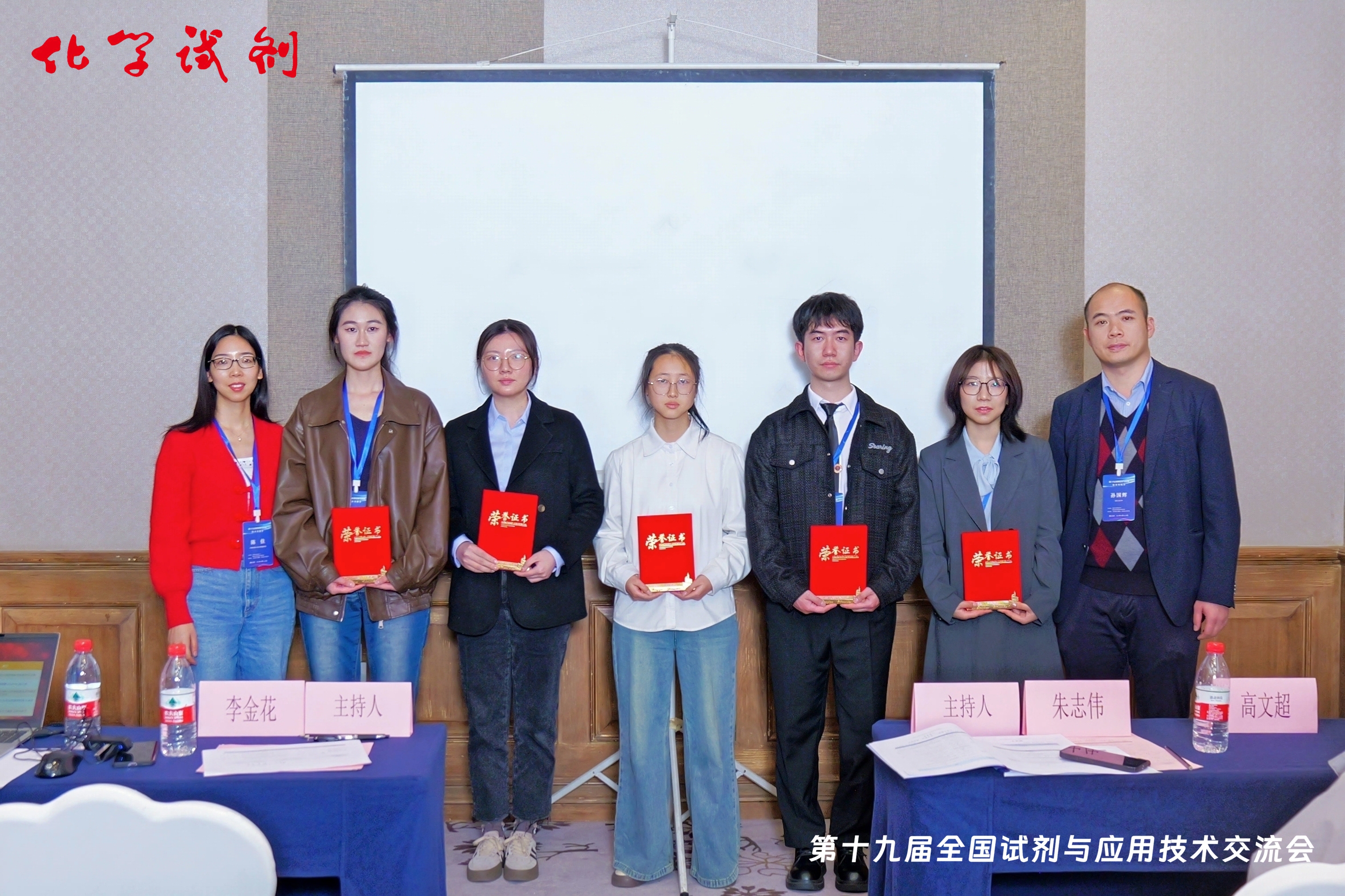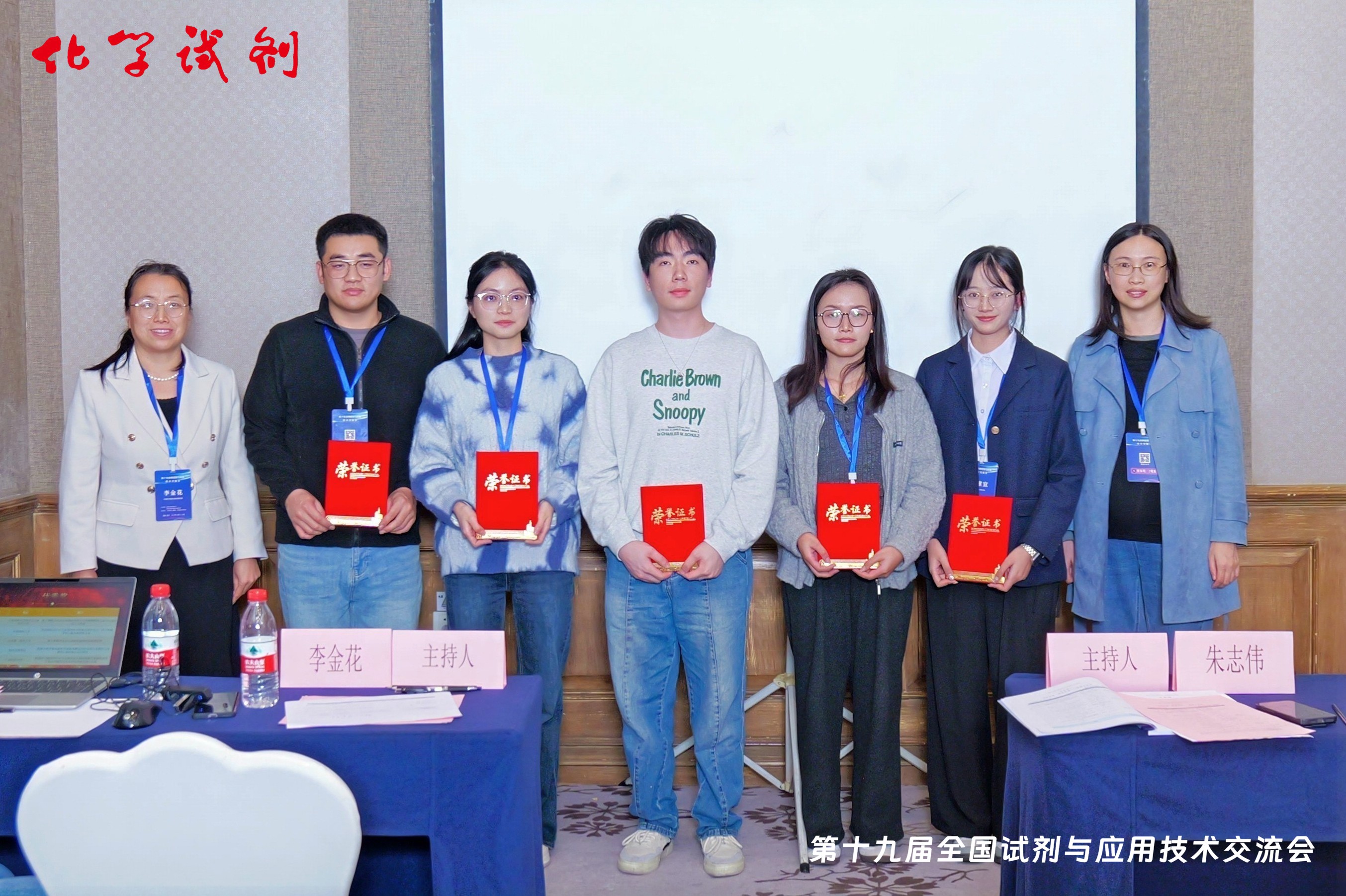 最终评选出15位获奖者,其中,一等奖2位,二等奖3位,三等奖5位,优秀奖5位。《化学试剂》编委中科院烟台海岸带研究所李金花研究员主持颁奖典礼,《化学试剂》期刊多位编委为获奖者进行颁奖。