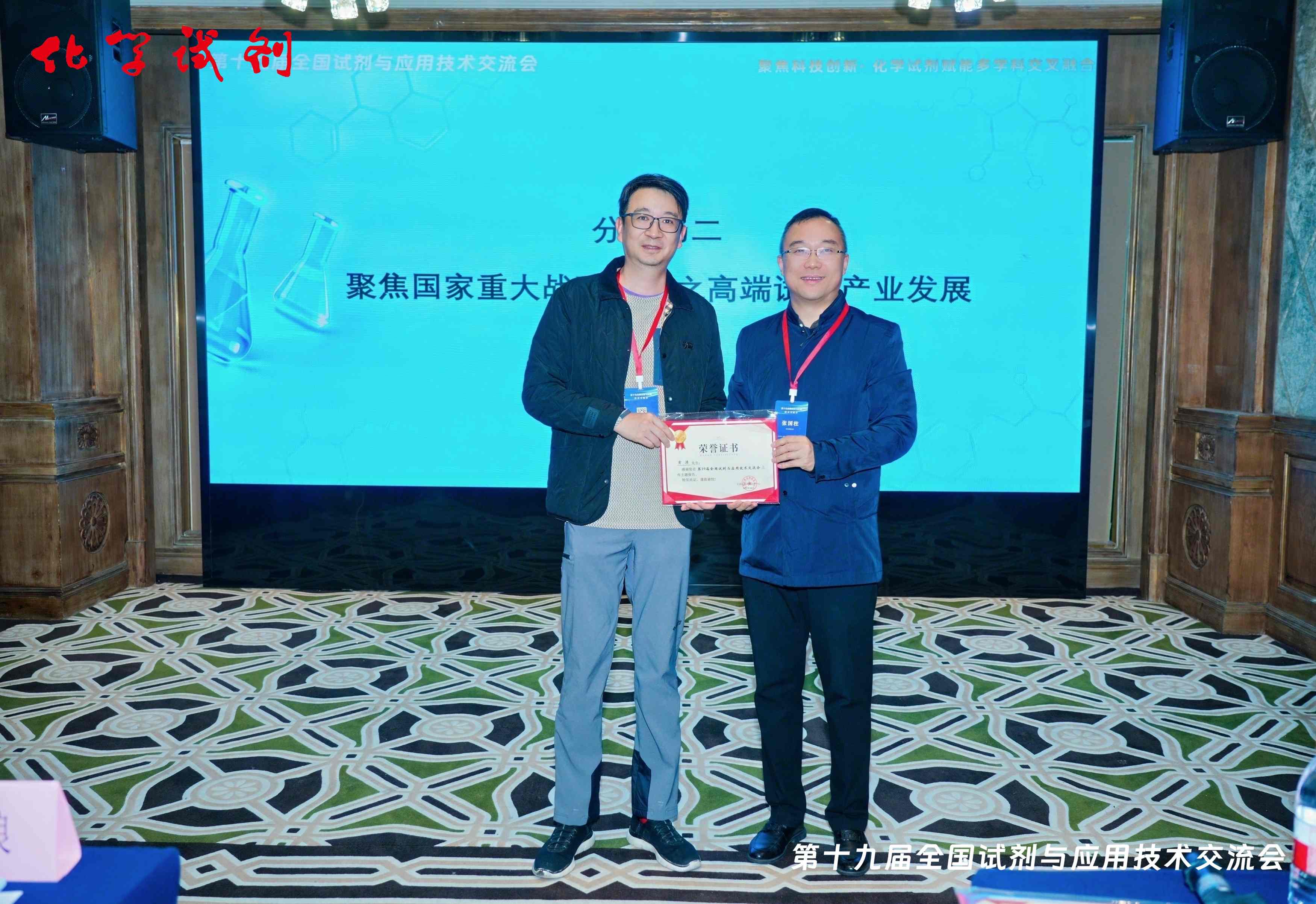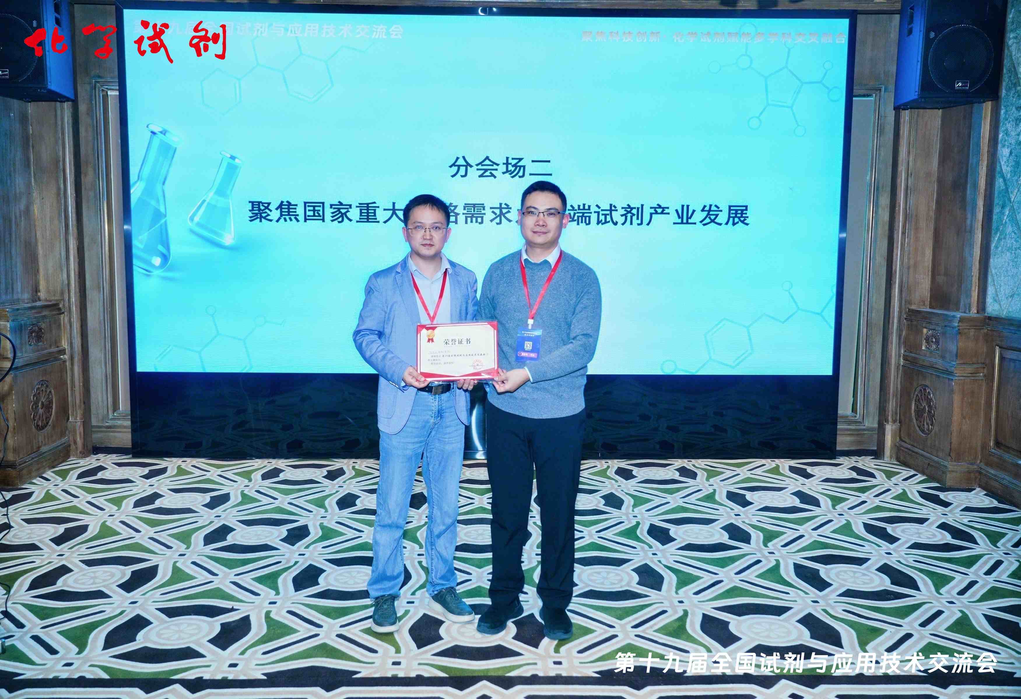 报告后,主持人郑重为每位报告专家颁发由全国化学试剂信息中心精心设计与制作的荣誉证书。这份证书不仅是对专家们精彩报告的高度认可,更承载着对各位专家拨冗参会、鼎力支持的深切谢意,也是彰显对专家智慧与学术贡献的诚挚尊重。