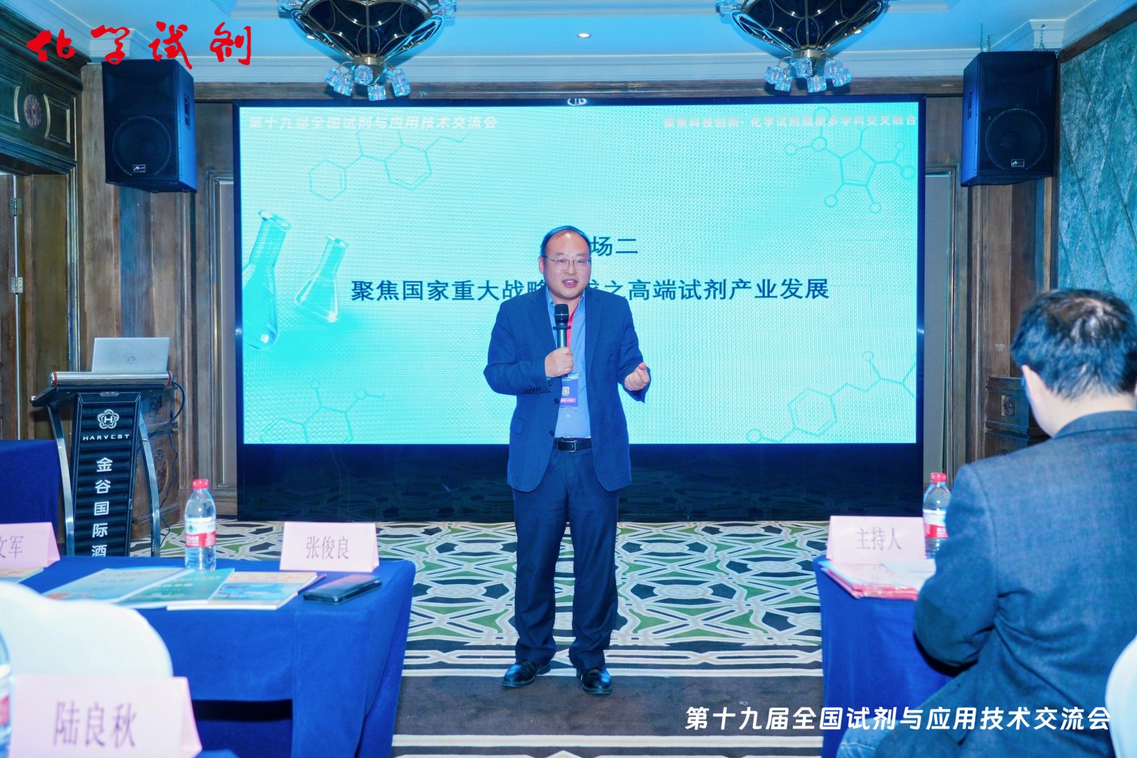 10 月 25 日下午,“高端试剂” 分会在召集主席复旦大学张俊良教授的致辞中拉开帷幕。张教授指出,国内原创科研受国外化学试剂依赖制约,关键试剂自主创新、国产品牌发展迫在眉睫,而提升高端试剂自主研发创新能力,是实现其自主可控、助力国产化的核心路径。此前,《化学试剂》期刊围绕该主题组稿《高端试剂》专辑,于 10 期刊发以搭建成果交流平台;今日,第十九届试剂交流会特设 “聚焦国家重大战略需求之高端试剂产业发展分会”,再次聚焦此主题。期待会议凝聚力量、共探路径,为我国高端化学试剂产业高质量发展注入更强动力!
