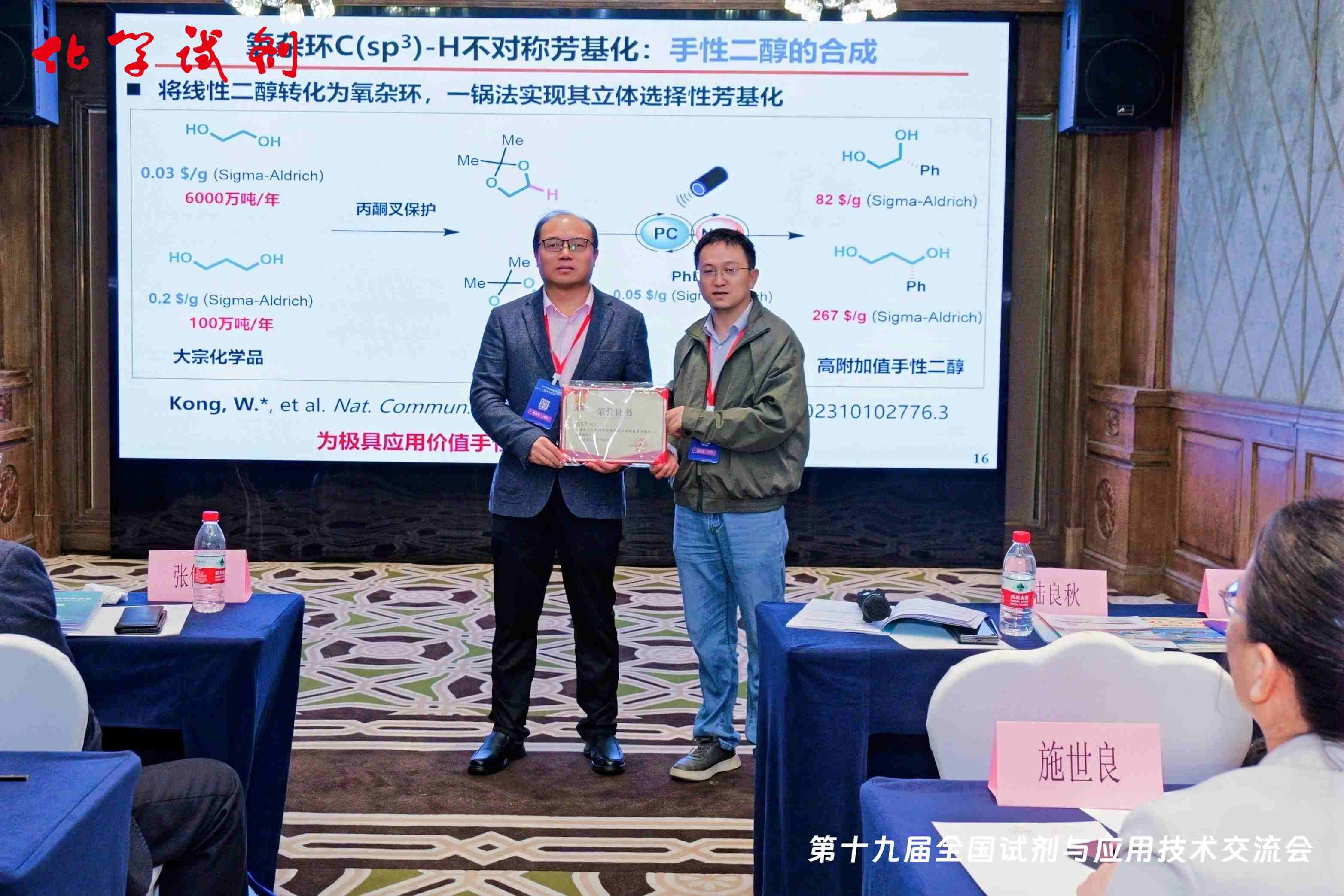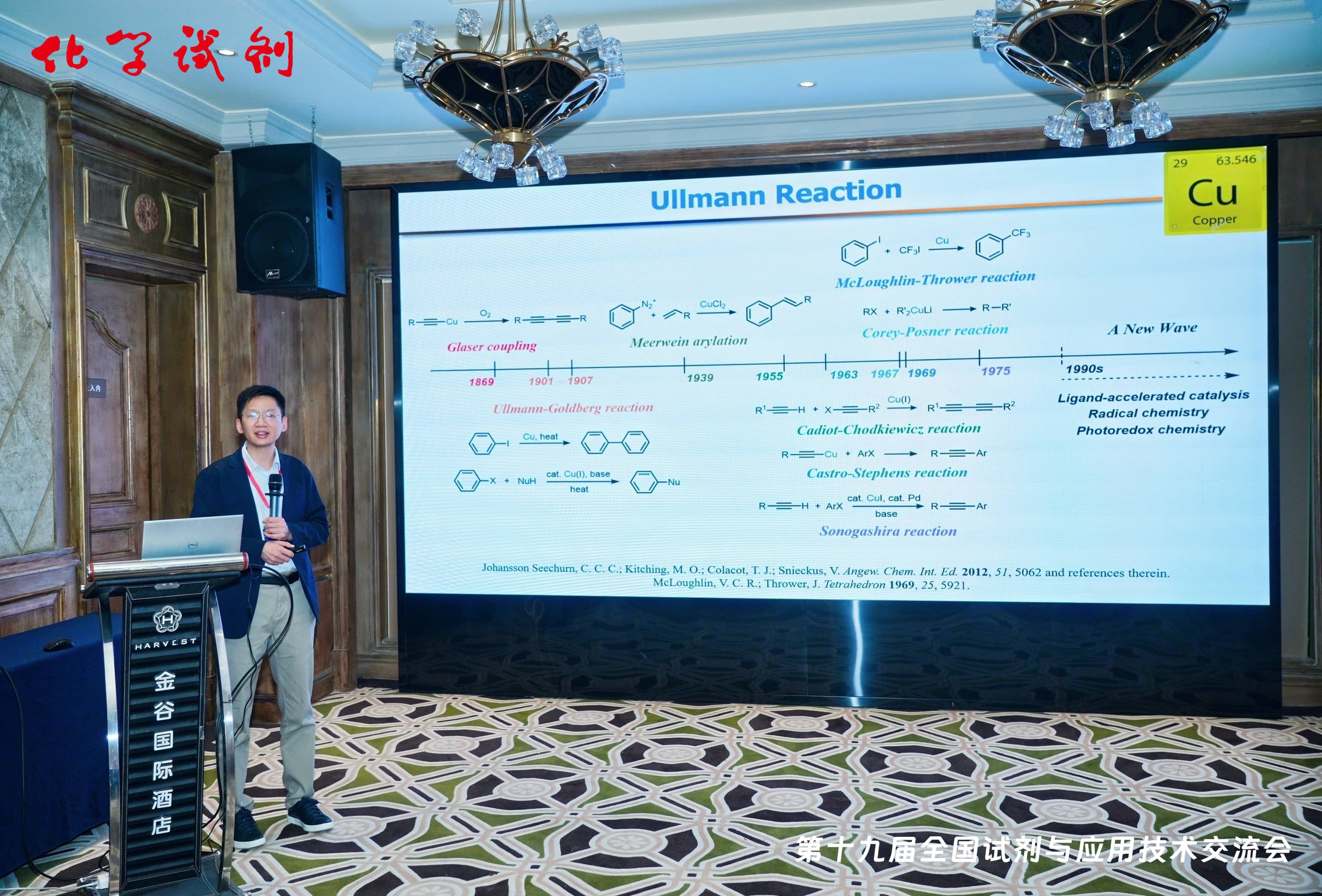 为期一天的 “高端试剂” 分会场报告内容丰富、精彩纷呈。来自全国各地的知名学者围绕高端试剂的设计、合成、应用及产业化过程中的科学问题与关键技术瓶颈展开了深入探讨,分享了在一价铜试剂、丰产金属催化、手性膦配体、糖基化试剂、连续流微反应技术等方面的最新研究进展。