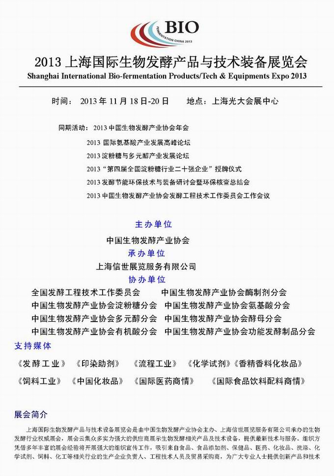 2013上海国际生物发酵产品与技术装备展览会