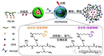 HC/PN/DOX的分子结构、光活化和低氧响应作用示意图[44]