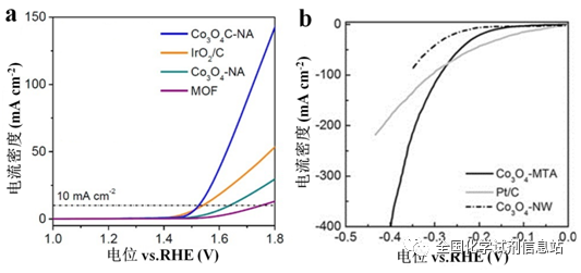 a. LSV曲线(OER)[43]曲线1~4分别为:MOF、Co3O4-NA、IrO2/C、Co3O4C-NA;