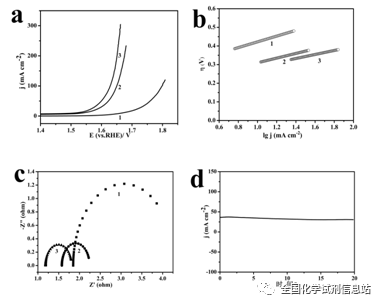 Fig.4 ElectrocatalyticOER properties of three catalytic materials