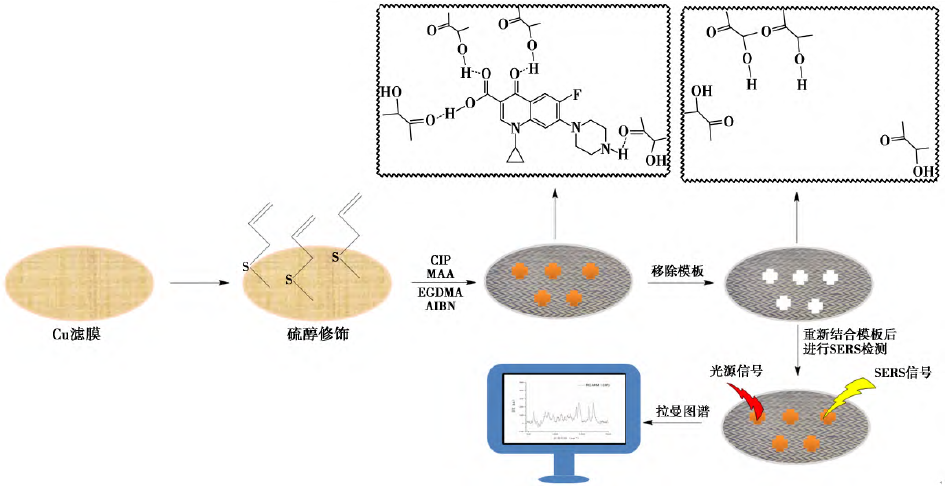 5[环丙沙星分子印迹]铜滤膜基环丙沙星分子印迹复合膜的制备、吸附性能及表面增强拉曼散射活性研究