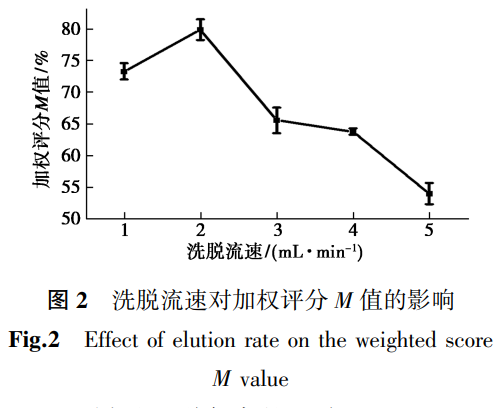 由图2可知,当洗脱流速为2 mL/min时加权评分最高,得分为(79.86±1.62)%,随着洗脱流速的增加,加权评分M值得分降低。