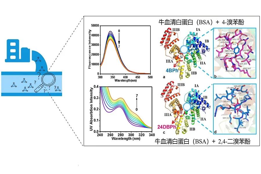 采用荧光光谱法、紫外可见光谱法和分子对接法研究两种溴代芳香族DBPs(4BPh和24DBPh)分别与BSA的相互作用,对荧光猝灭机制、相互作用力、结合位点等进行深入探究;
