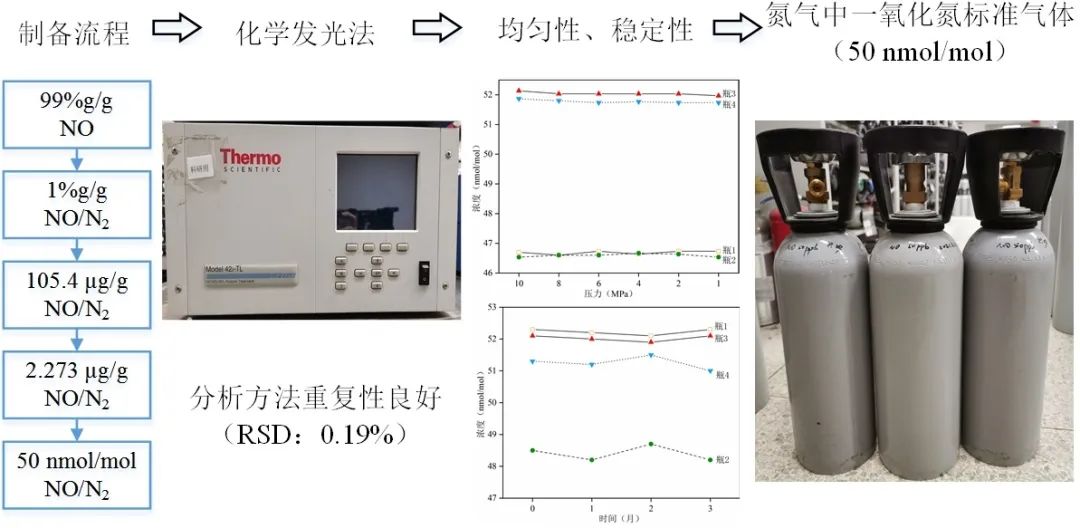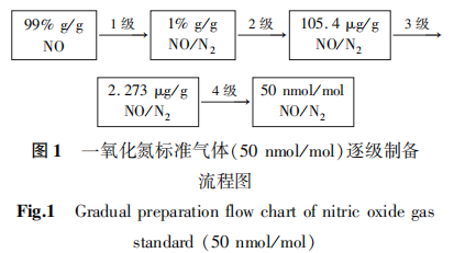 制备了浓度水平为50 nmol/mol的氮气中一氧化氮标准气体;
