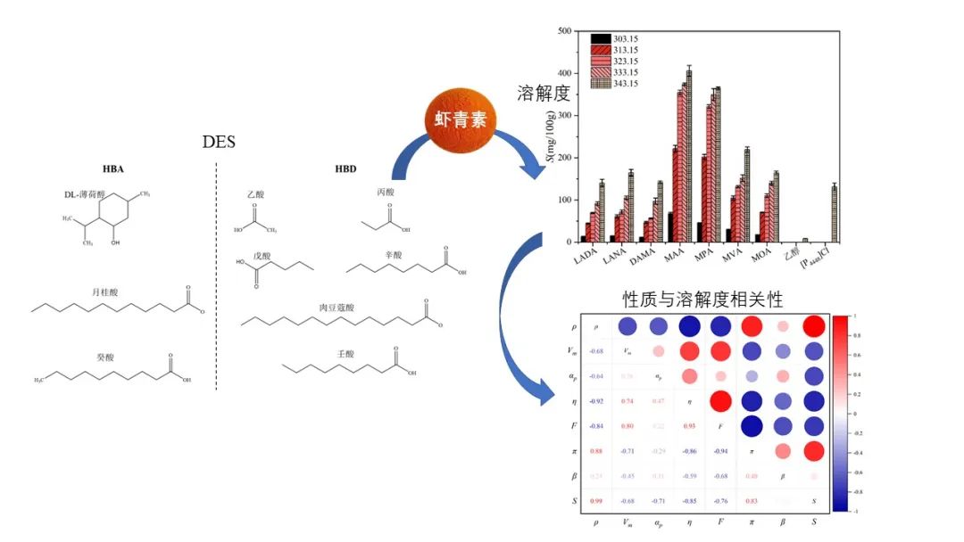 低共熔溶剂具有成本低、易于设计和环境友好等优点,与亲水性低共熔溶剂和其他基于鏻的疏水性低共熔溶剂相比,萜烯类低共熔溶剂黏度较低,在萃取类胡萝卜素应用中展现出巨大的应用潜力。在选择和设计提取天然类胡萝卜素的溶剂中,需事先了解溶剂的基本性质,目前对于疏水性低共熔溶剂研究较少,基于薄荷醇和有机酸类的天然低共熔溶剂对环境危害小,和类胡萝卜素相容性高,是潜在的绿色萃取溶剂。