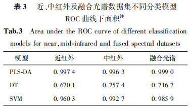 采用偏最小二乘判别分析(PLS-DA)、决策树(DT)和支持向量机(SVM)等3种方法分别建立分类模型,比较不同预处理方式搭配不同模型对西红花不同产地样品的识别准确率。1.5 数据分析