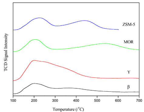 Fig.2 Graph of NH3-TPD on different zeolites