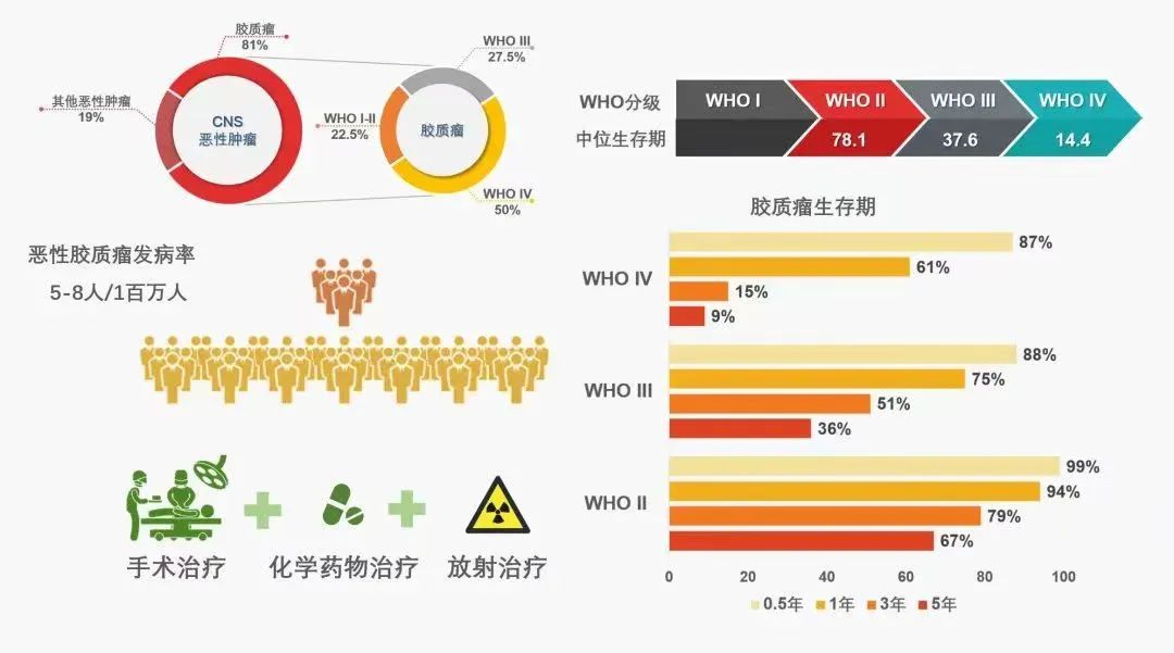 脑胶质瘤是一种常见的颅内肿瘤,具有起病隐匿、病死率高的特点。脑胶质瘤年发病率高,属于临床罕见病。目前,胶质瘤的手段主要有手术切除,化学药物治疗和放射治疗。然而,很少有治疗方法能明显改善脑胶质瘤病人的预后。因此,迫切需要开发新型治疗脑胶质瘤的药物。