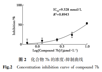 最后,我们测试了活性最优化合物7h对肿瘤细胞的IC50值,以TAE-226为阳性对照,如图2所示。